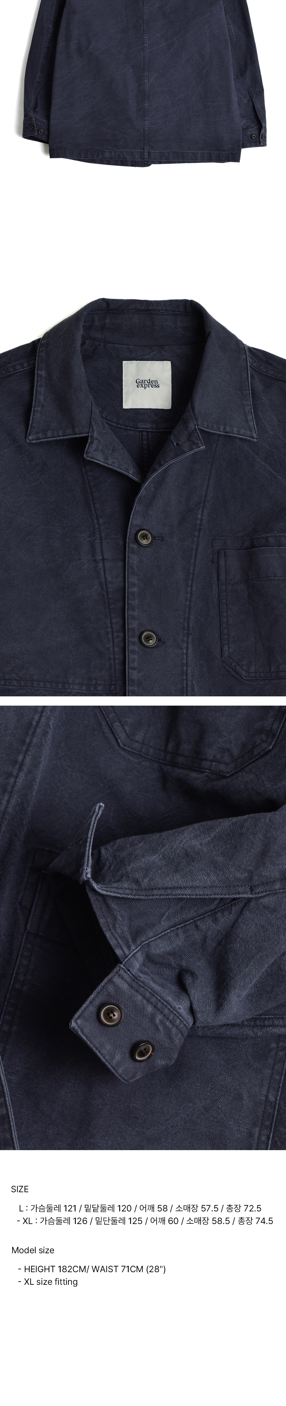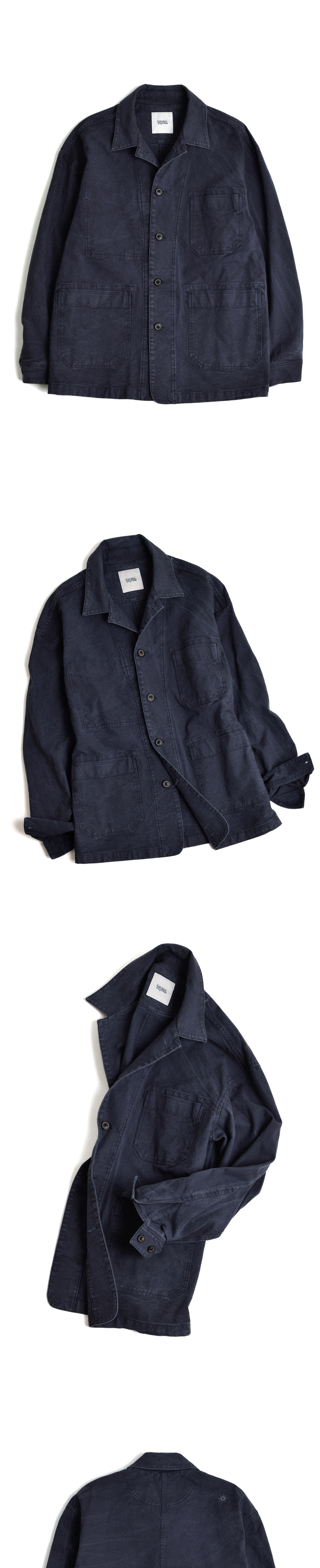 조직감이 드러나는 탄탄한 소재에 가먼트 바이오 워싱을 더해, 특유의 빈티지한 외관과 컬러감을 살린 워크자켓