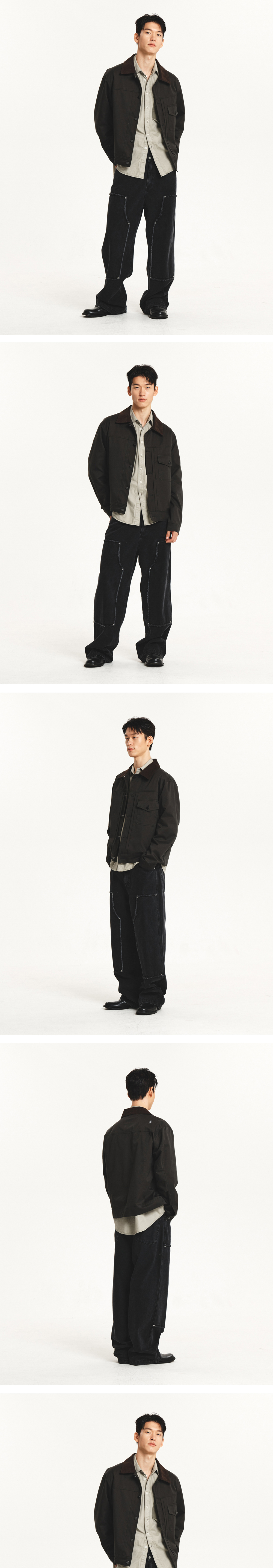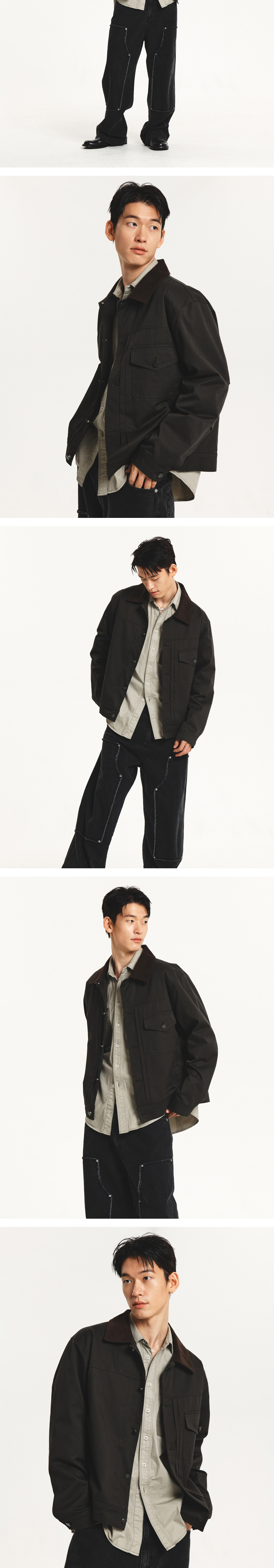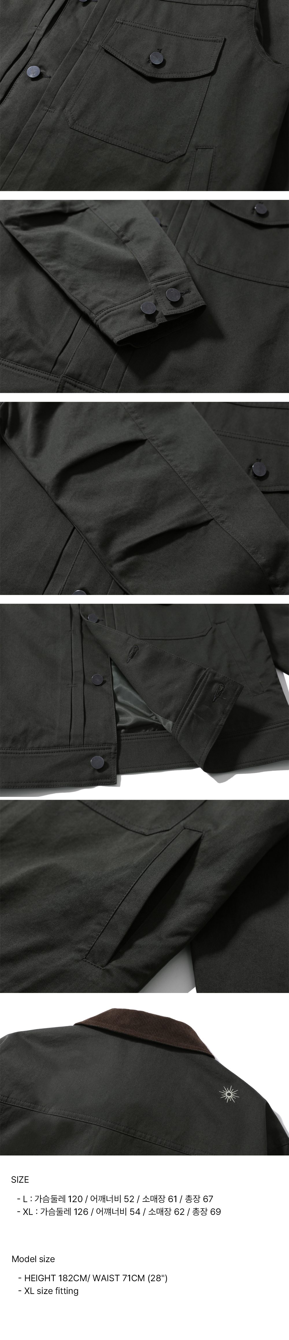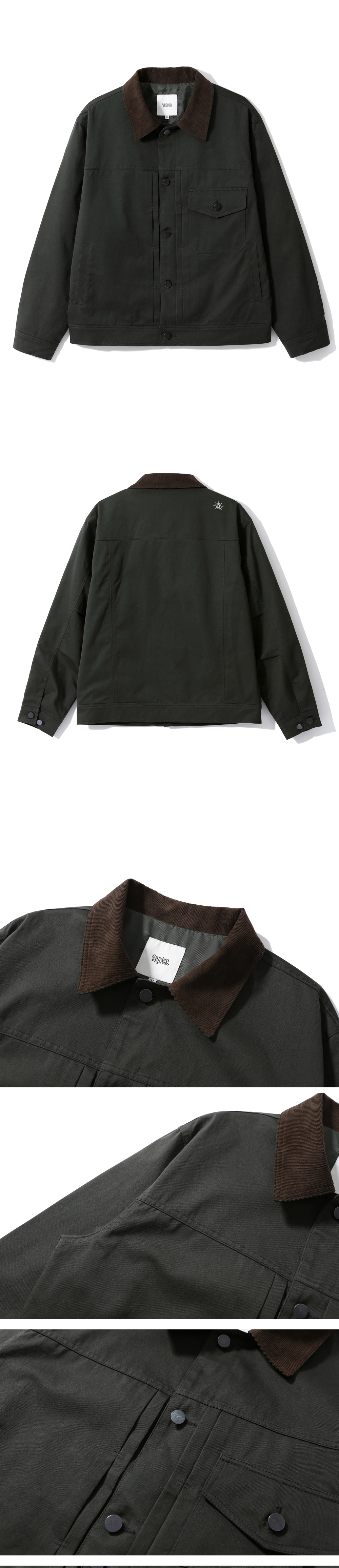 부드럽고 탄탄한 바이오워싱 코튼소재에 코듀로이 칼라를 매칭한 간절기 트러커 자켓