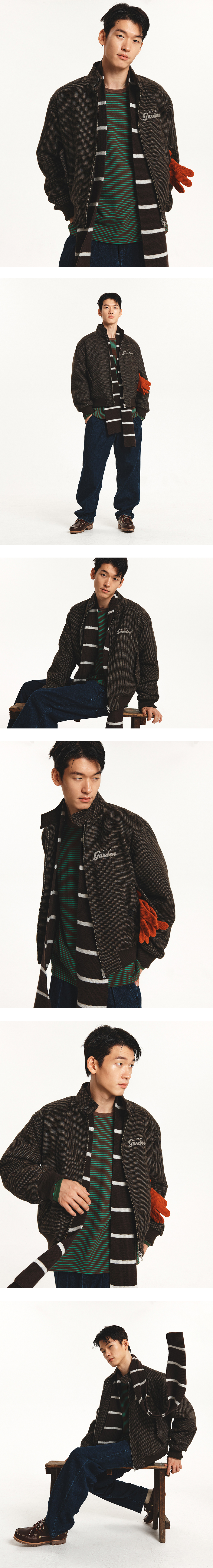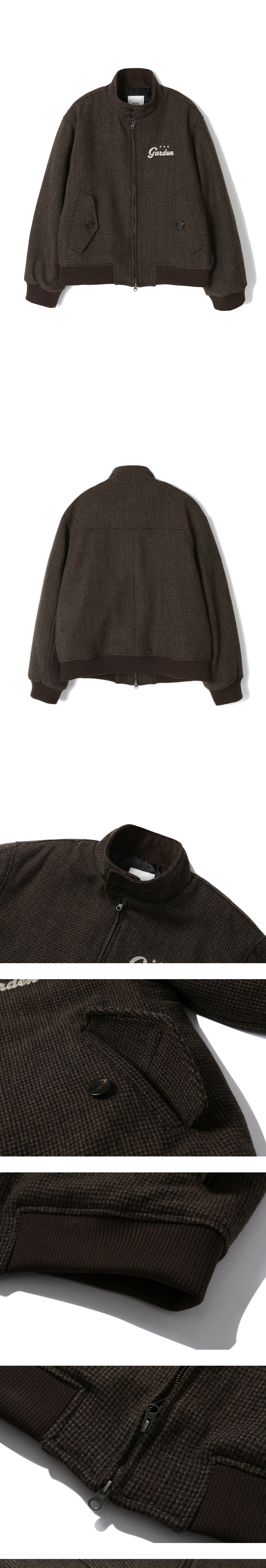 4가지 컬러의 원사가 트위드 조직으로 조화롭게 짜여진 울 원단을 사용하여 고급스러운 느낌을 주는 해링턴 자켓
