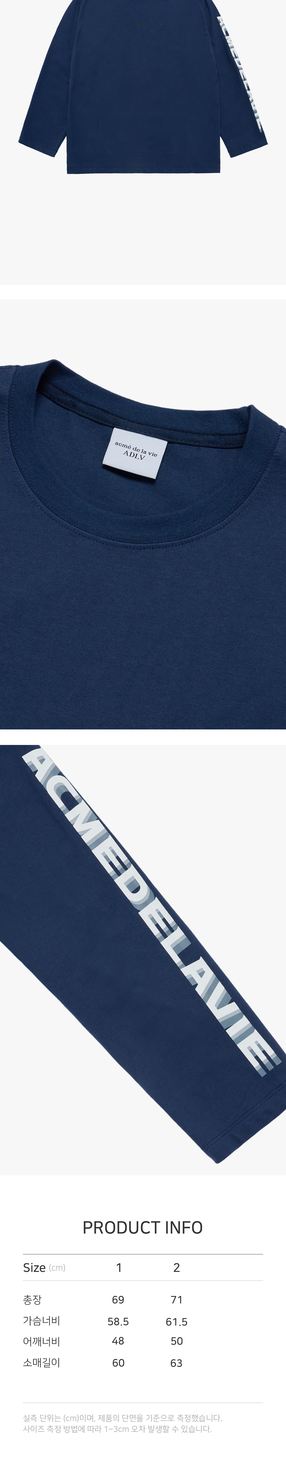 아크메드라비 슬리브 레터링 로고 긴팔 네이비