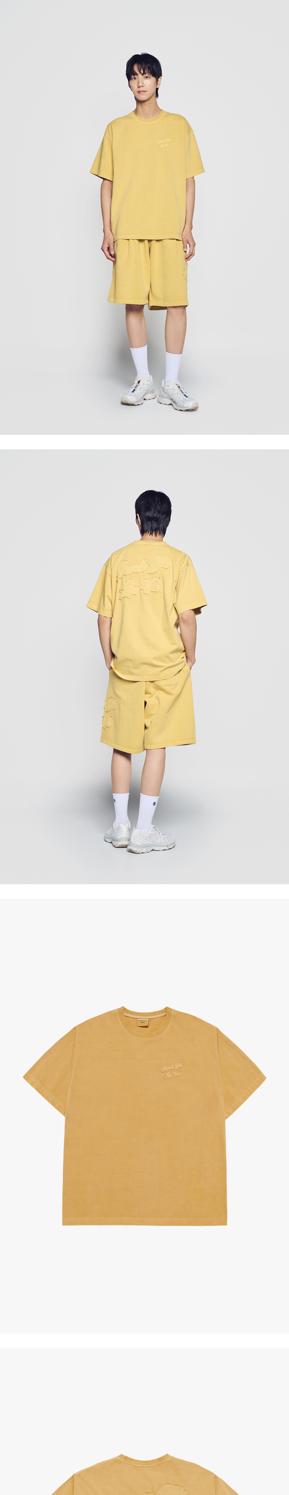 아크메드라비 아플리케 로고 피그먼트 반팔 라이트 옐로우