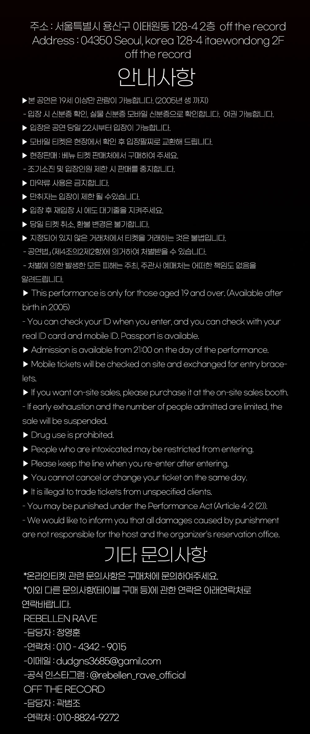 티켓 구매 시 본 내용을 모두 확인하였으며, 이에 동의한 것으로 간주됩니다.