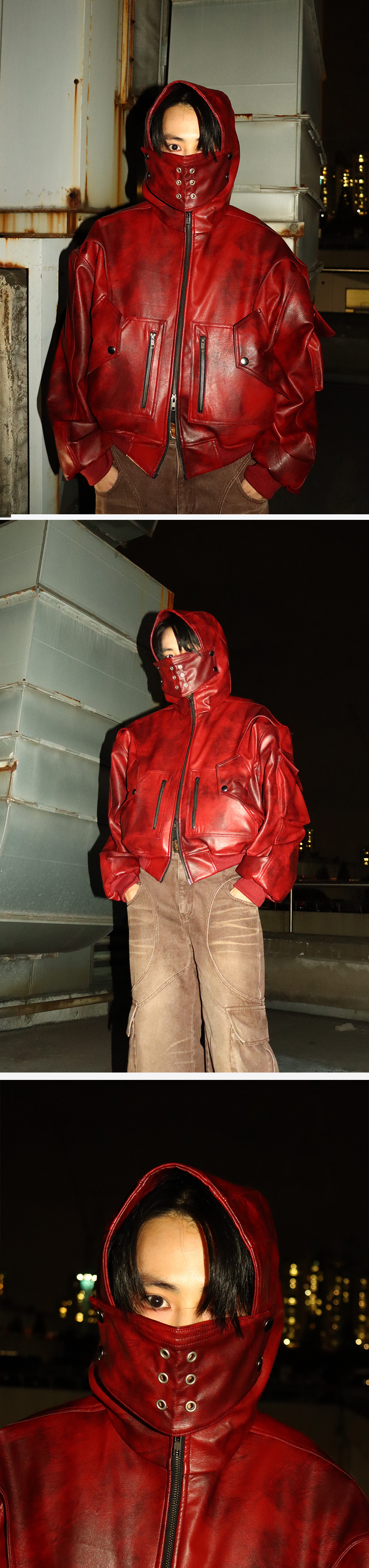 주문 후 5~7 일 후 순차 발송됩니다. (주말/공휴일 제외) - 후드에 탈부착이 가능한 마스크가 포함된 워싱 레더자켓입니다. 기본 마스크(아일렛 마스크)가 포함 되어있습니다. - 4OZ 누빔으로 보온성을 높여 한겨울 까지 착용이 가능합니다 - FULLOFSSUN 시그니쳐 써클디테일의 카고포켓 - YKK 투웨이 지퍼 및 스냅단추 (제품 색상은 모델컷이 아닌 제품컷의 색상이 실제색상과 더가깝습니다)