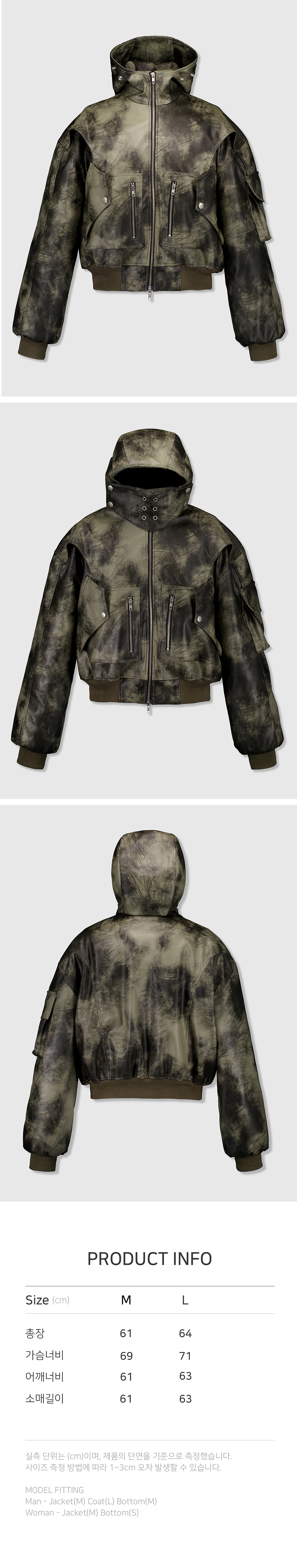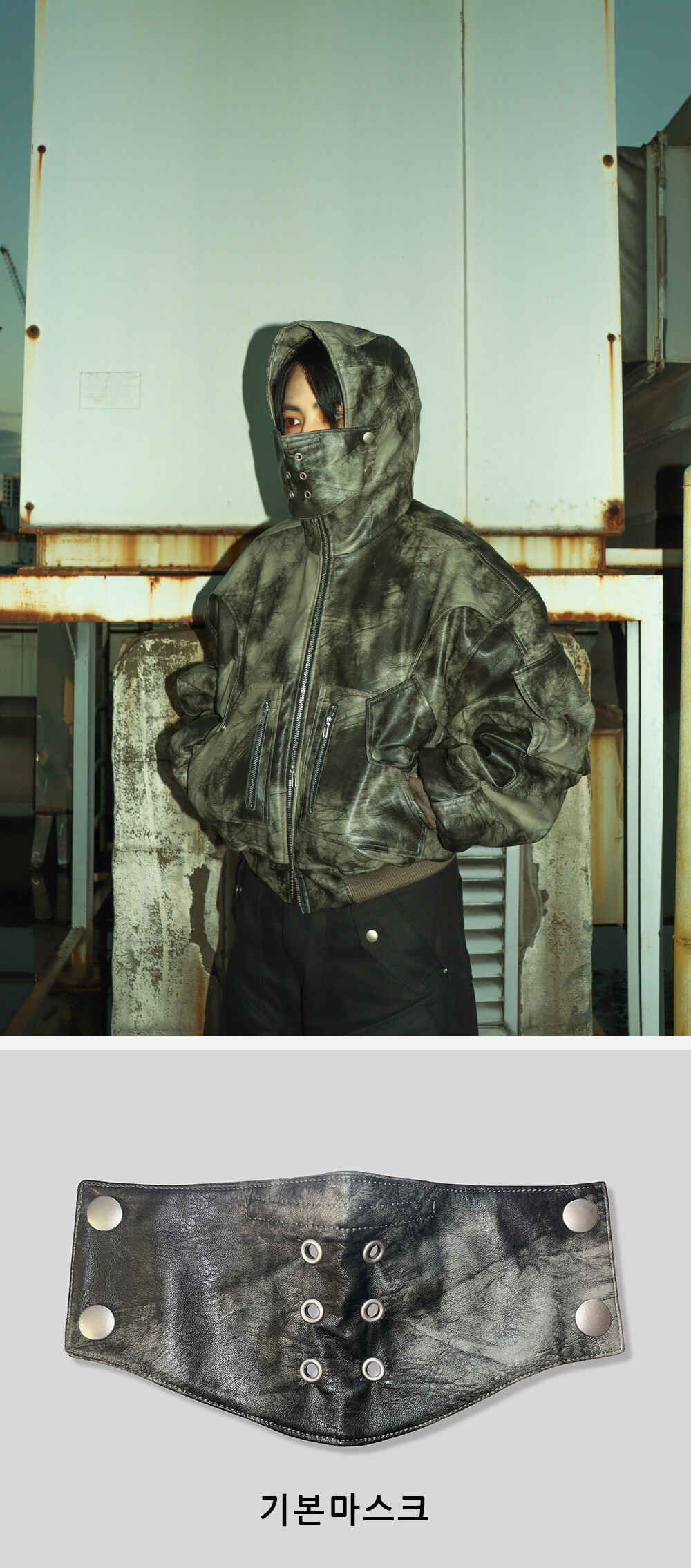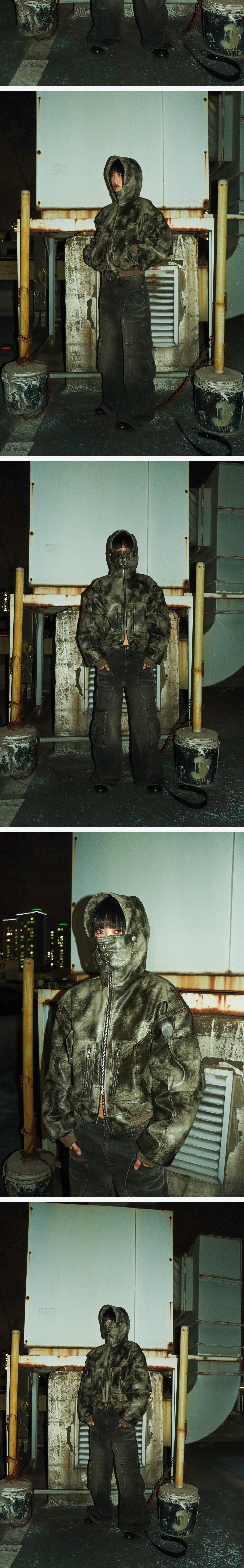 주문 후 5~7 일 후 순차 발송됩니다. (주말/공휴일 제외) - 후드에 탈부착이 가능한 마스크가 포함된 워싱 레더자켓입니다. 기본 마스크(아일렛 마스크)가 포함 되어있습니다. - 4OZ 누빔으로 보온성을 높여 한겨울 까지 착용이 가능합니다 - FULLOFSSUN 시그니쳐 써클디테일의 카고포켓 - YKK 투웨이 지퍼 및 스냅단추