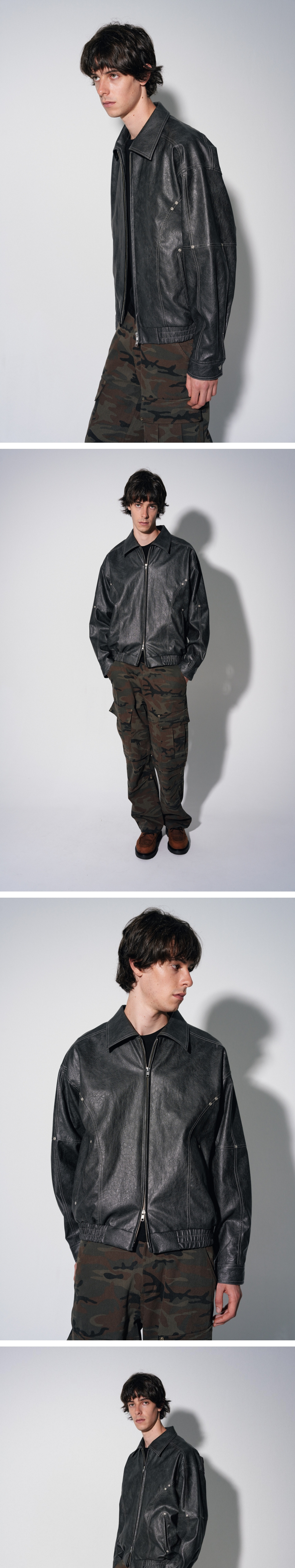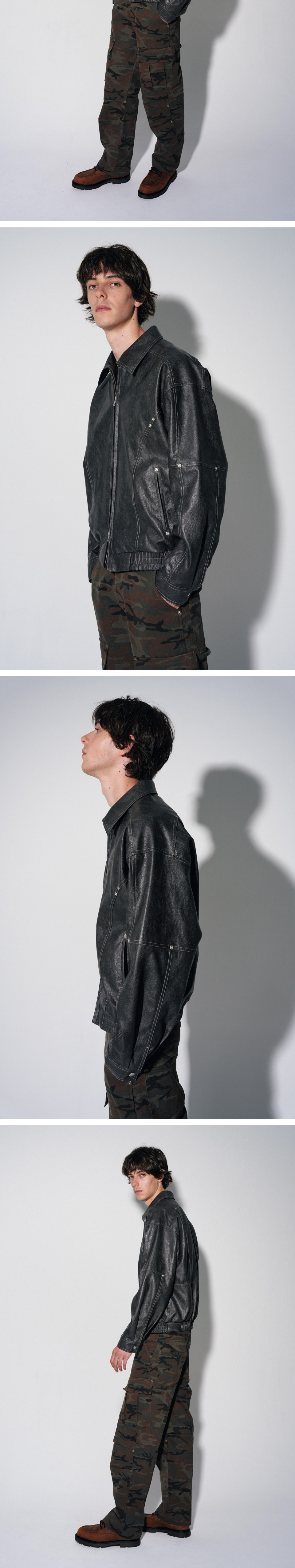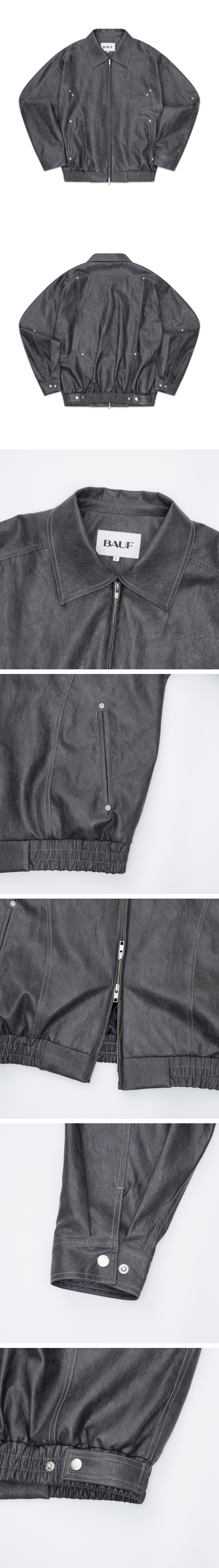 바우프 폴너트 커브드 레더 자켓 차콜