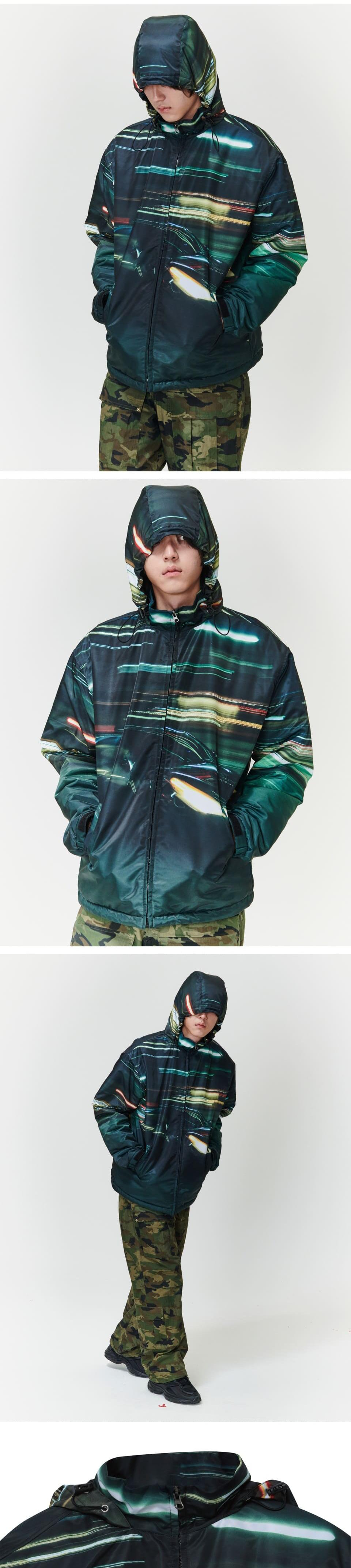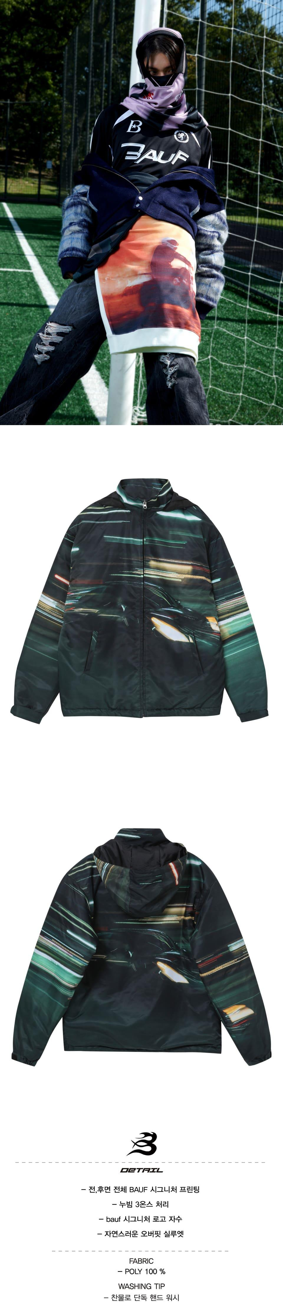 바우프 레이싱 프린티드 후드 자켓 블랙