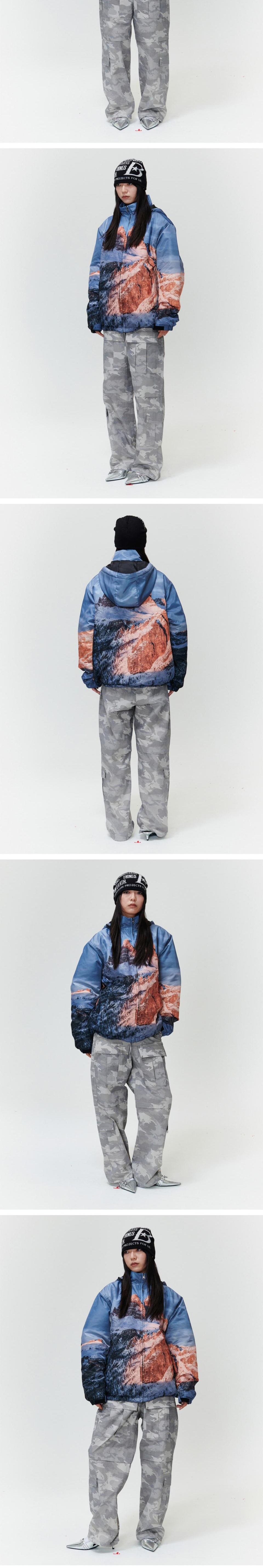 바우프 마운틴 프린티드 후드 자켓 빈티지 스카이 블루