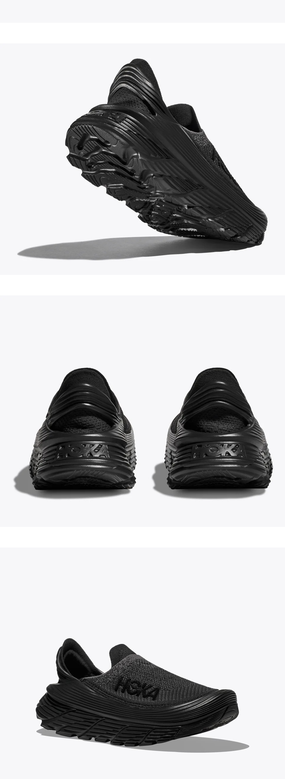 최고의 편안함을 선사하는 호카의 리스토어 TC입니다. - 편안함을 위한 엔지니어링된 스트레치 존 - 탈착식 30% 사탕수수 기반 EVA 깔창 - 풀니트 양말 * 오프셋 5.00mm (앞굽 38mm, 뒷굽 33mm)