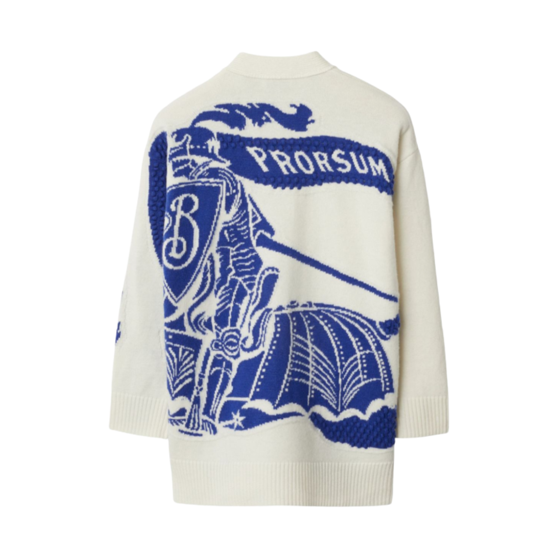 (Kids) Burberry Equestrian Knight Intarsia Knit Cardigan Ecru Royal Blue