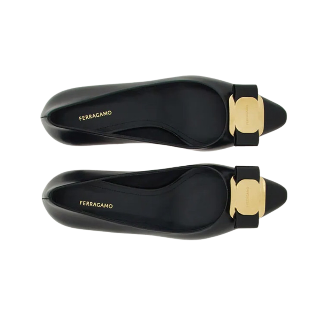 (W) Ferragamo New Vara Plate Kitten Heel Black - D