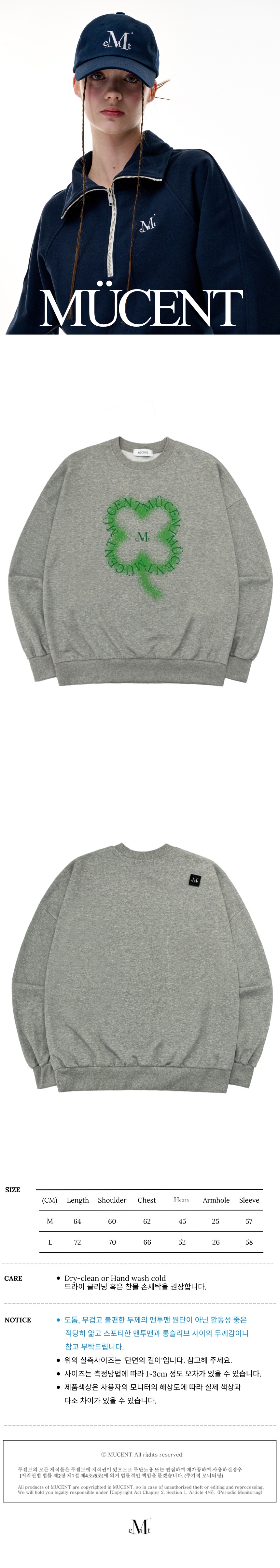 ┃Detail • 전체적으로 루즈한 핏의 스웨트 셔츠 • 소매 밑단 밴딩 처리 • 드롭되는 어깨라인 & 여유있는 가슴폼 • 전면 클로버 레터링 로고 포인트 • 후면 무센트 시그니처 로고 택 디테일 • 부드러운 터치감을 가진 코튼 원단 ┃Material : Polyester 100% ┃Care : Dry cleaning - 무센트는 말기의 행성인 이 지구에서 지속 가능한 옷들을 고민합니다. 우리는 신념을 소비하는 미닝아웃을 지지합니다.