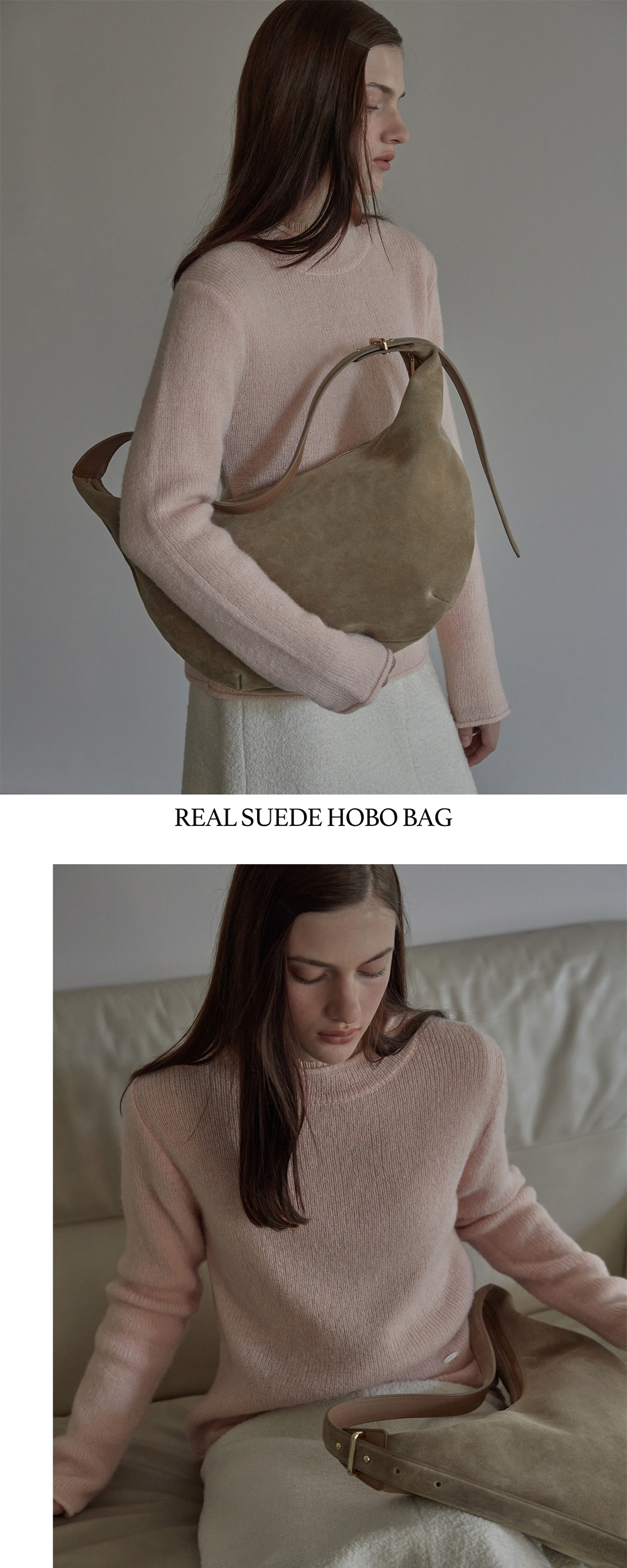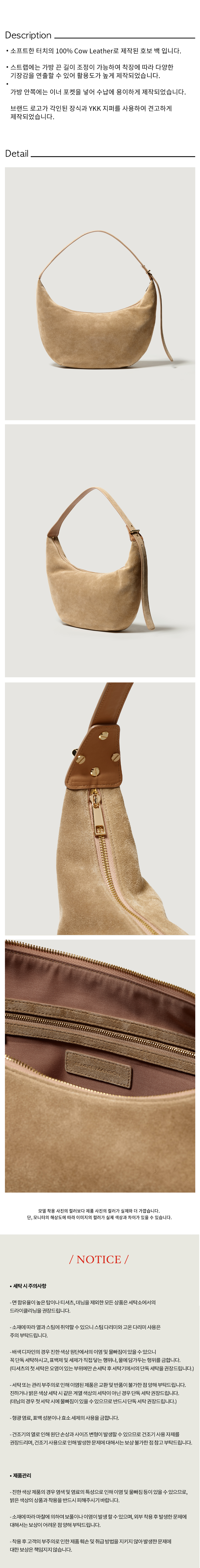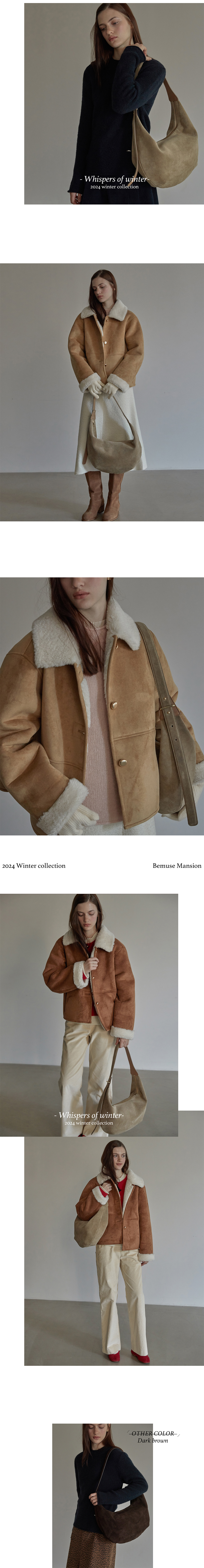 비뮤즈맨션 리얼 스웨이드 호보 백 샌드 베이지