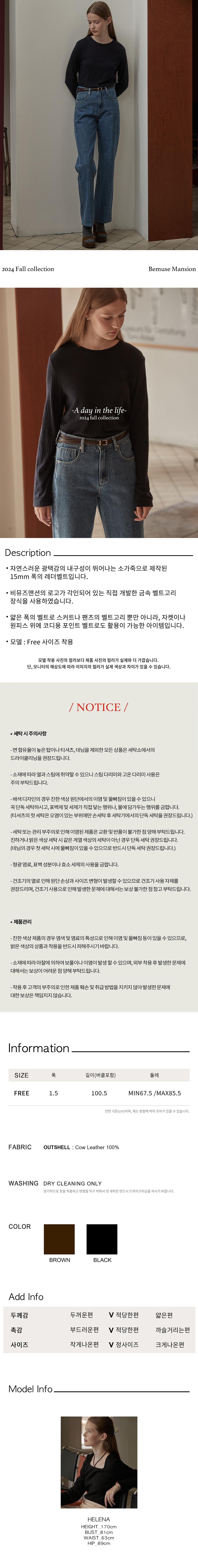 비뮤즈맨션 비뮤즈 레더 씬 벨트 브라운