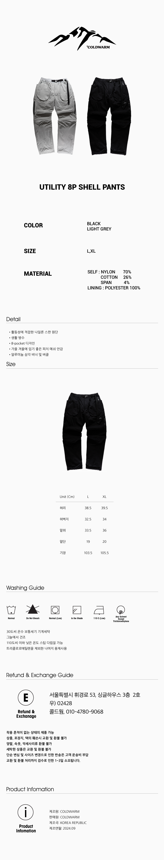 콜드웜 유틸리티 8포켓 쉘 팬츠 라이트 그레이