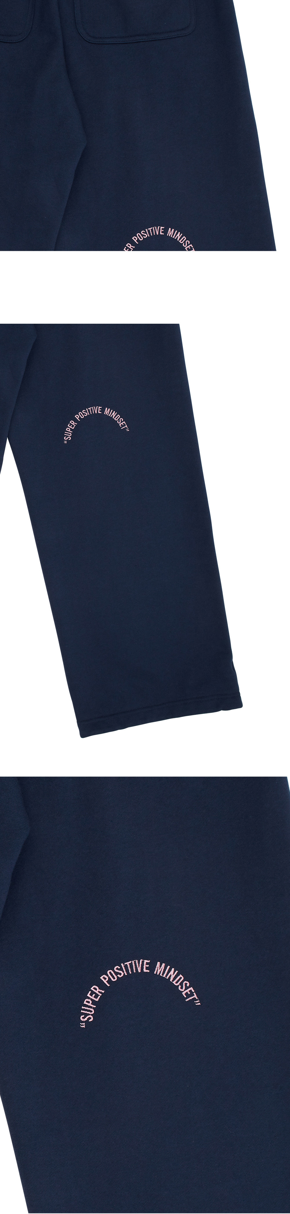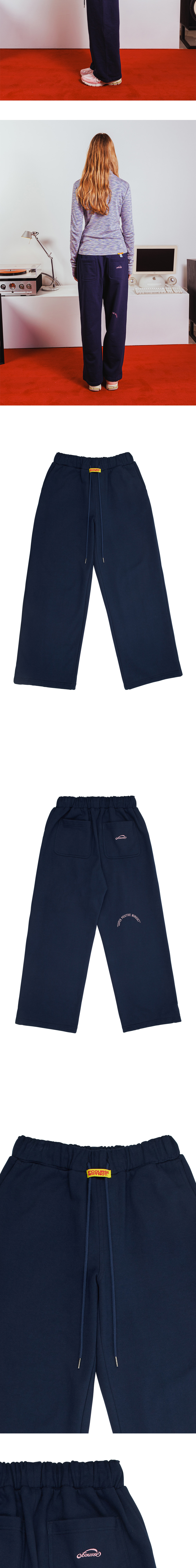 가볍고 포근한 터치감의 보온성 높은 C/P 기모쮸리 소재 여유로운 느낌의 우먼스 와이드핏 허리 사이즈 조절 스트링,엘라스틱 밴드 조거핏으로 연출 가능한 밑단 스트링 배색 컬러 스티치 포인트 뒷판 주머니,무릎 브랜드 시즌 그래픽 컬러포인트 자수 앞판 브랜드 로고 포인트라벨