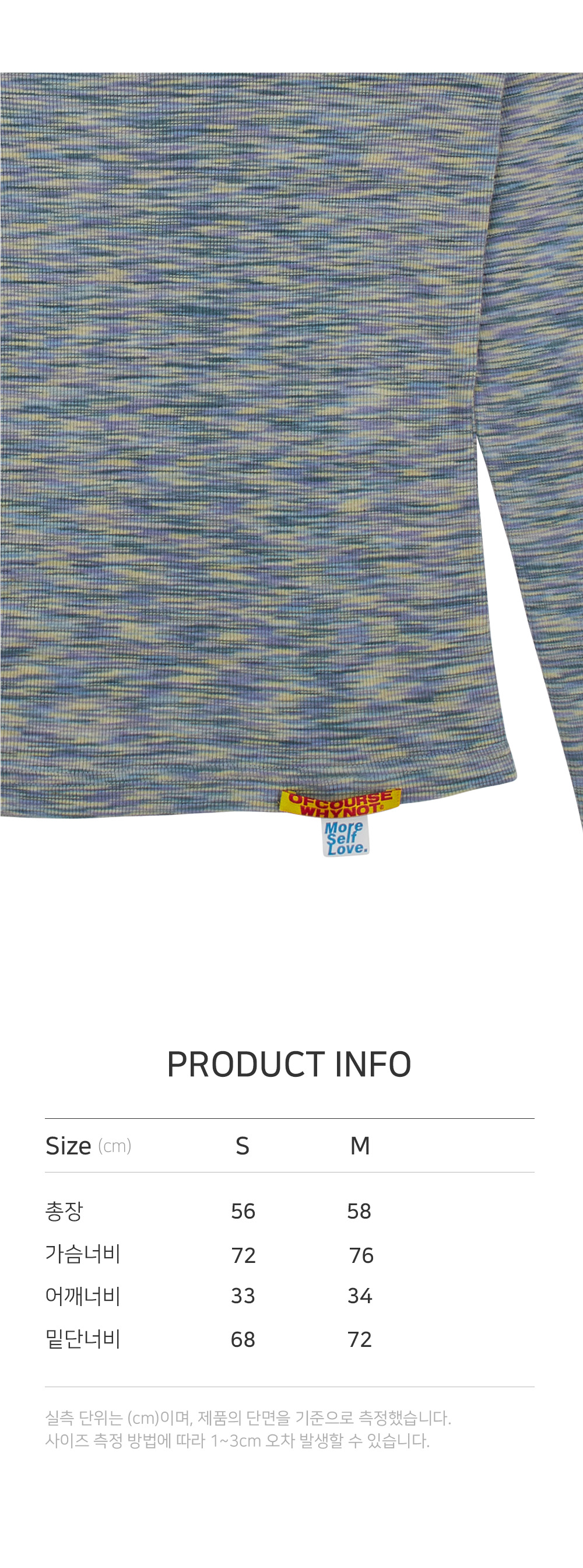 부드러운 터치감과 높은 텐션감의 코튼100% 소재 환상적인 컬러감의 스페이스 다잉 원단 다양한 체형에 어울리는 슬림핏 레이어드 스타일링에 높은 활용도 앞판 브랜드 로고 자수 우측 소매 브랜드 슬로건"SUPER POSITIVE MINDSET" 자수 뒷판 브랜드 로고 포인트라벨 뒷판 브랜드 슬로건 "MORE SELF LOVE" 포인트라벨