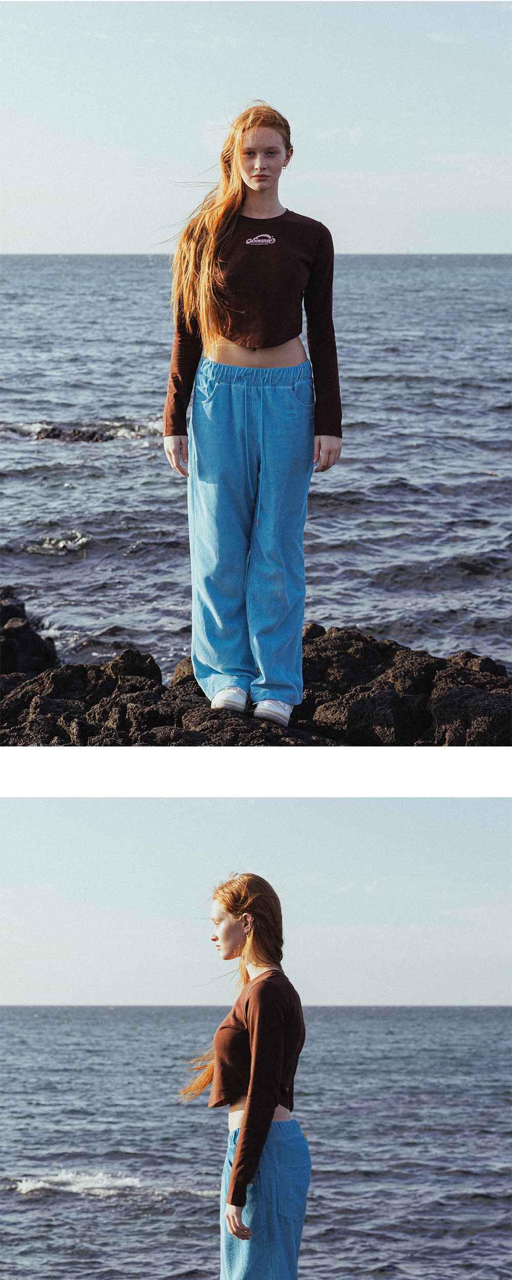 오브콜스와이낫 유어 스탠다드 크롭 롱슬리브 탑 브라운