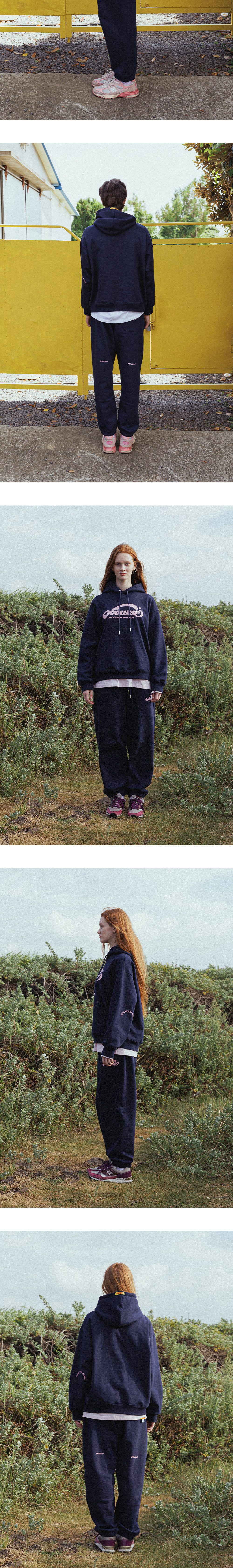 가볍고 포근한 터치감의 보온성 높은 C/P 기모쮸리 소재 여유로운 느낌의 유니섹스 세미오버 핏 후드 사이즈 조절 스트링 앞판 브랜드 로고 컬러포인트 후로피 프린트 좌측 소매 브랜드 시즌 그래픽 컬러포인트 자수 후드 중심 브랜드 로고 포인트라벨