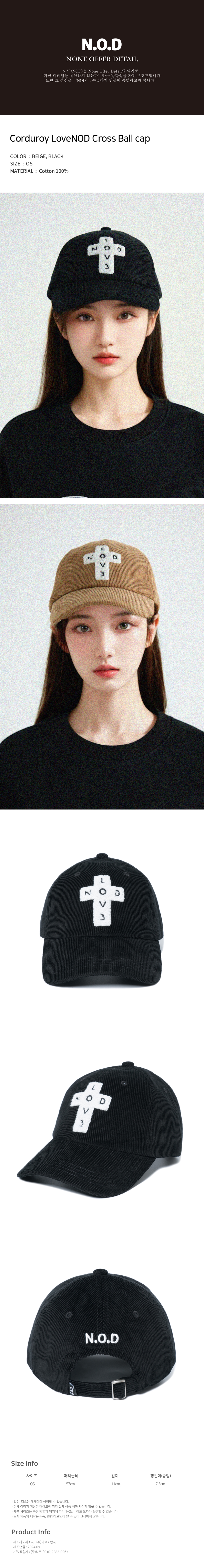 노드 코듀로이 러브노드 크로스 볼 캡 블랙