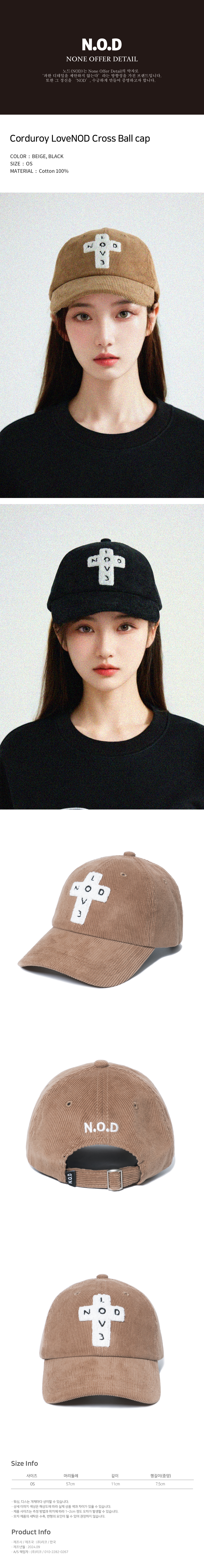 노드 코듀로이 러브노드 크로스 볼 캡 베이지