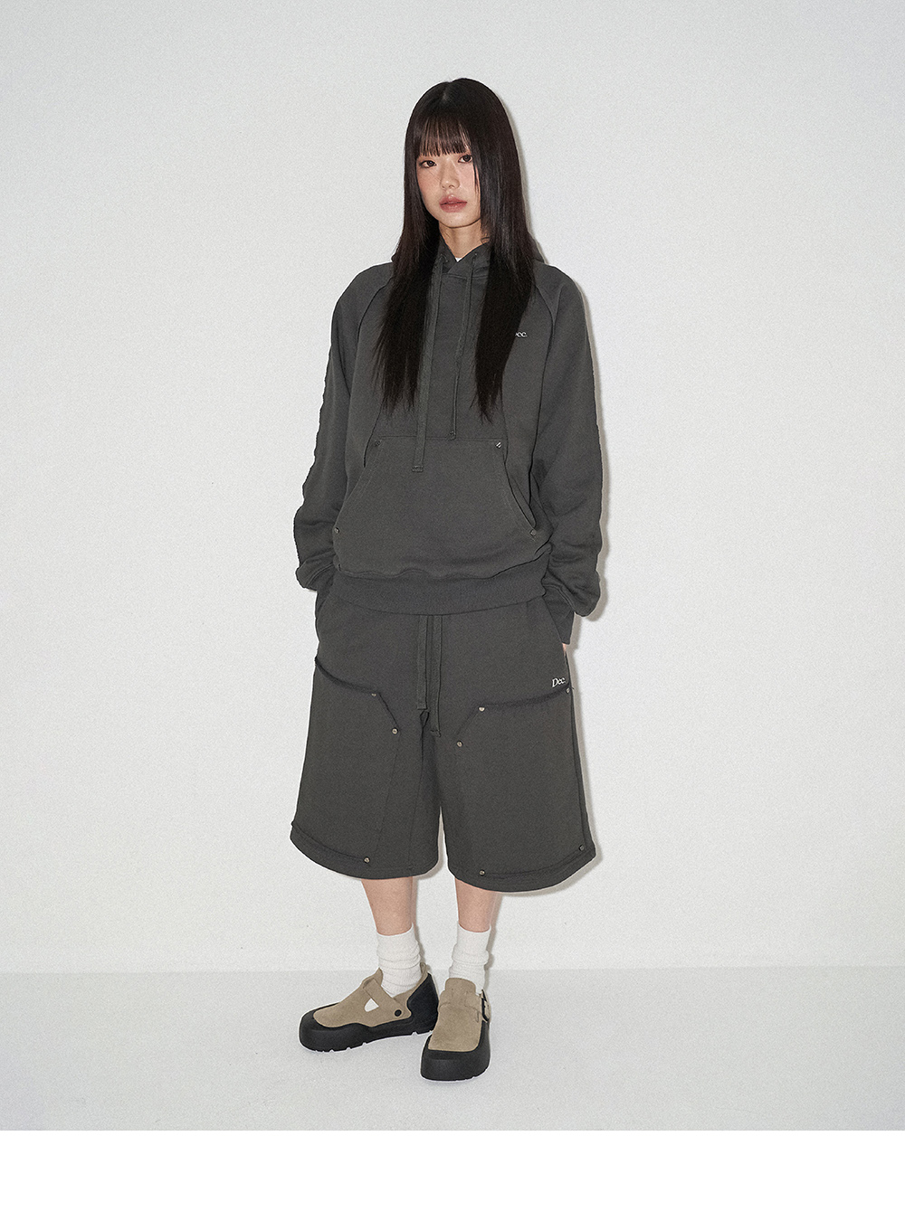 디셈버텐의 대표 스웻팬츠 시리즈 중 변형 버전으로 고밀도 고중량 헤비 쭈리 원단을 사용한 버뮤다 스웻팬츠입니다. (1yd/850g) 이번 시즌은 전면부 카펜터 디테일과 리벳 장식이 특징입니다. - 바이오 워싱, 텐타 가공, 덤블 워싱 완료 - 축률 3.0% 미만 원단 - 헤비한 중량감의 국내 생산 코튼 원단 - 미국 코마사 원사 이용, 최고급 코튼 사용 - 원단 내부 폴리 직조로 편안한 터치감 - 포켓 하단 부분 Dec. 브랜드 로고 자수 - 카펜터 디테일, 옆선, 후면 포켓 시접 이용한 디테일 봉제 작업