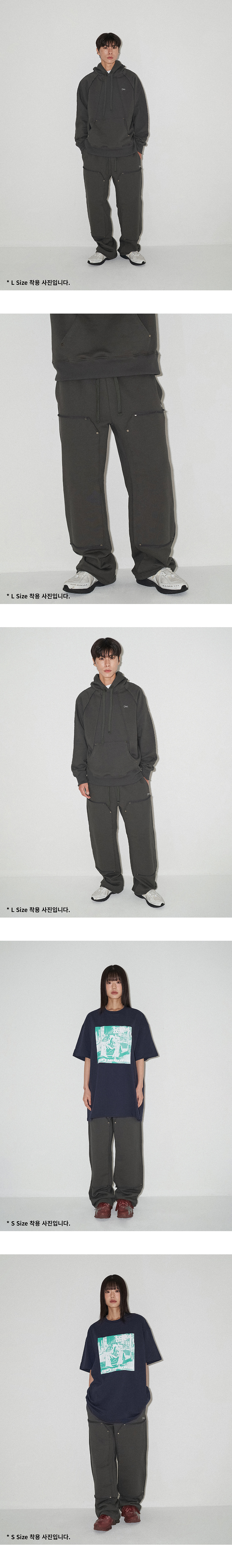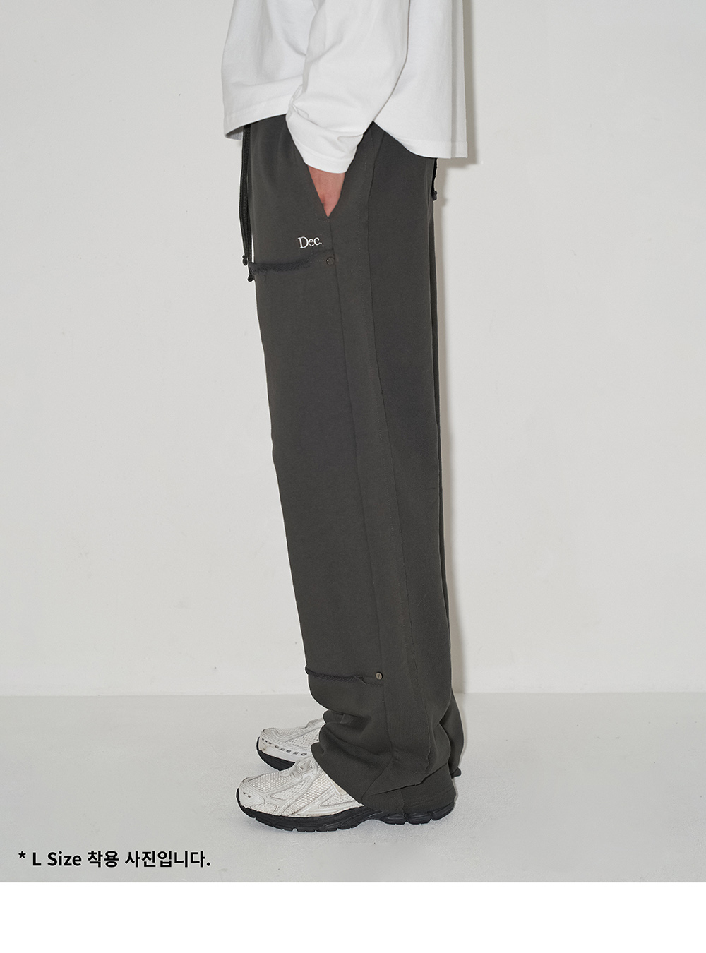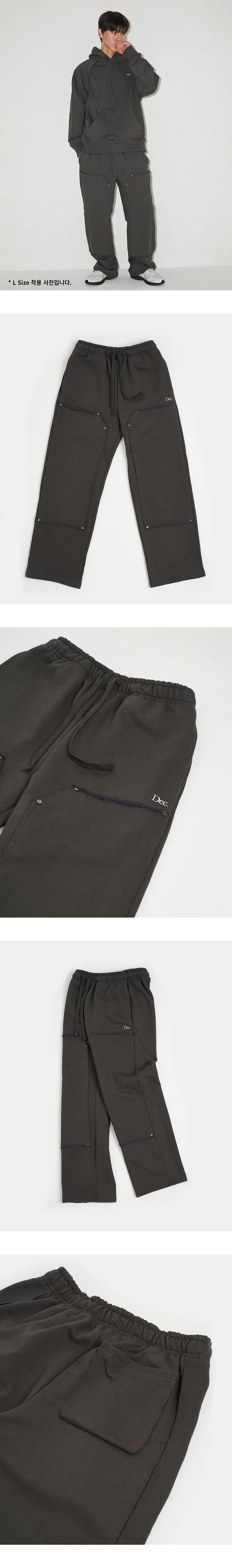 디셈버텐의 대표 제품으로 고밀도 고중량 헤비 쭈리 원단을 사용한 스웻팬츠입니다. (1yd/850g) 이번 시즌은 전면부 카펜터 디테일과 리벳 장식이 특징입니다. - 바이오 워싱, 텐타 가공, 덤블 워싱 완료 - 축률 3.0% 미만 원단 - 헤비한 중량감의 국내 생산 코튼 원단 - 미국 코마사 원사 이용, 최고급 코튼 사용 - 원단 내부 폴리 직조로 편안한 터치감 - 포켓 하단 부분 Dec. 브랜드 로고 자수 - 카펜터 디테일, 옆선, 후면 포켓 시접 이용한 디테일 봉제 작업