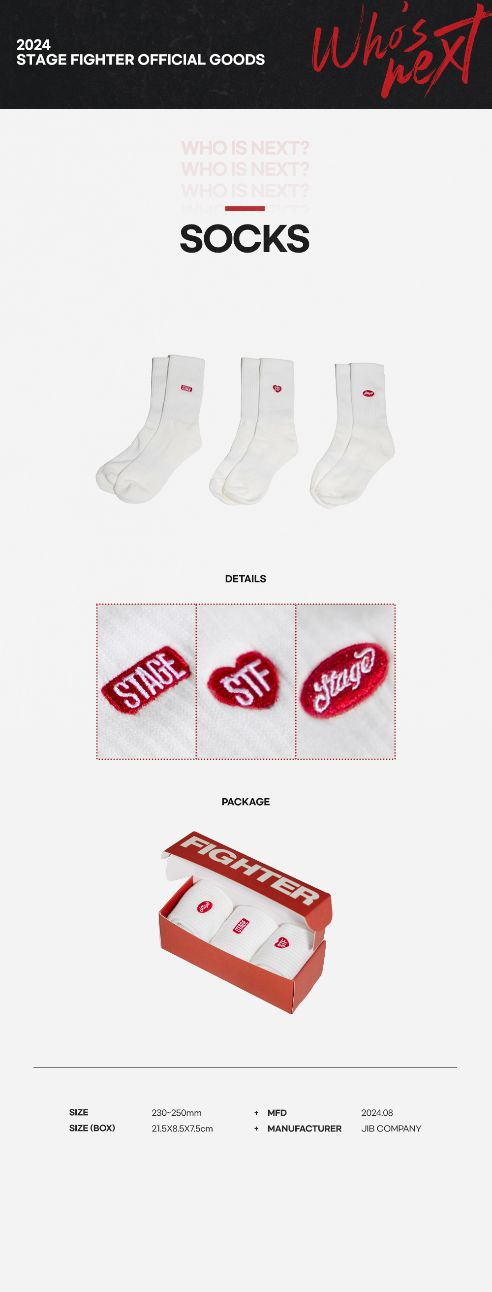 스테이지 파이터 양말 화이트 (3개입)