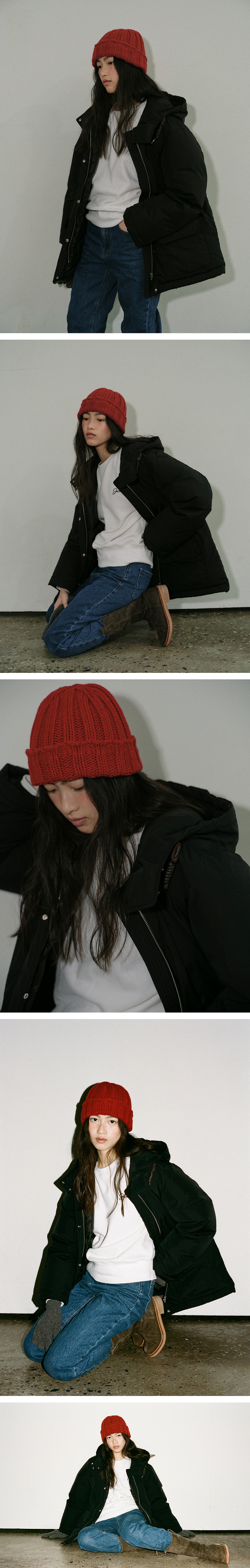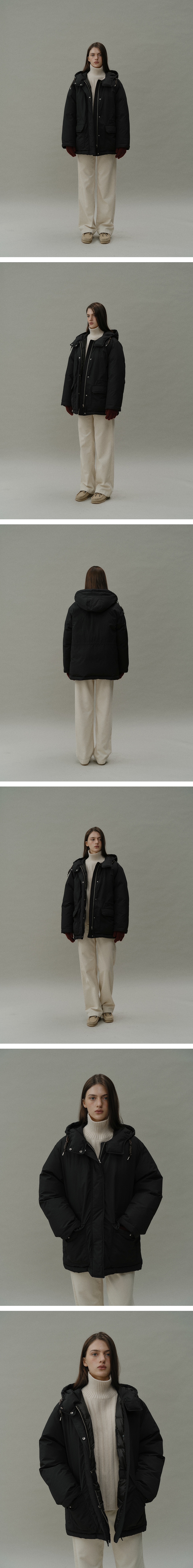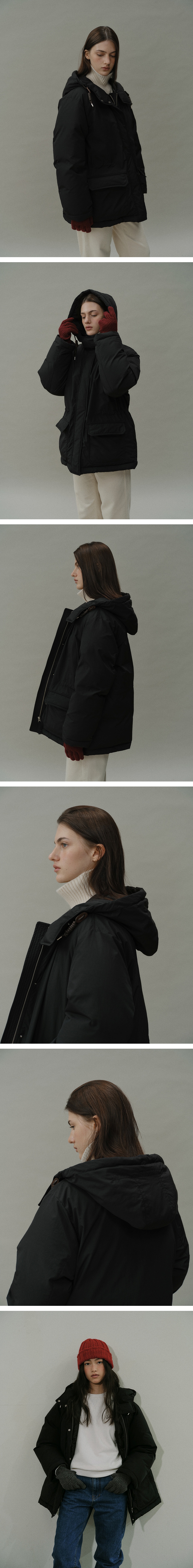 블랭크공삼 구스다운 하프 후드 코트 블랙