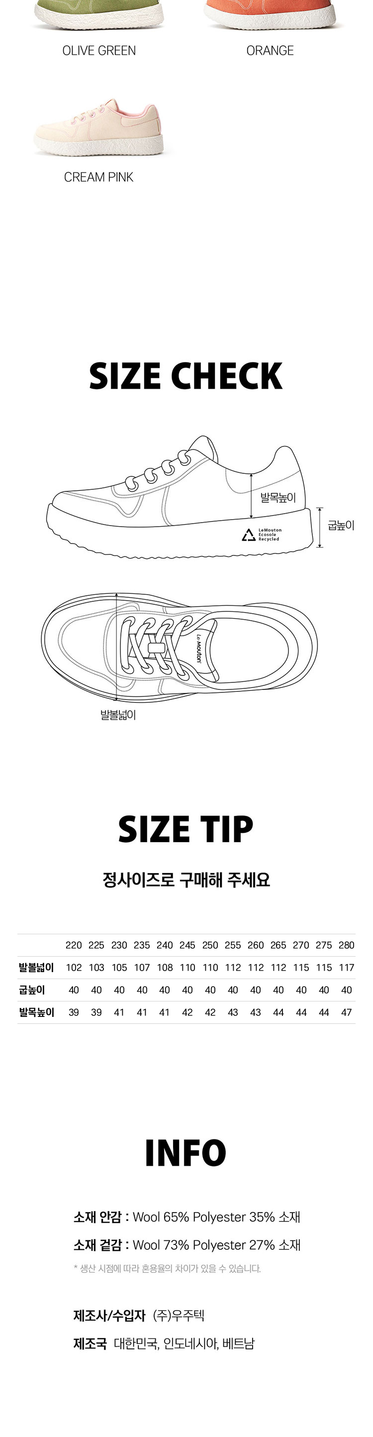 르무통 메이트 발 편한 메리노울 운동화 블랙