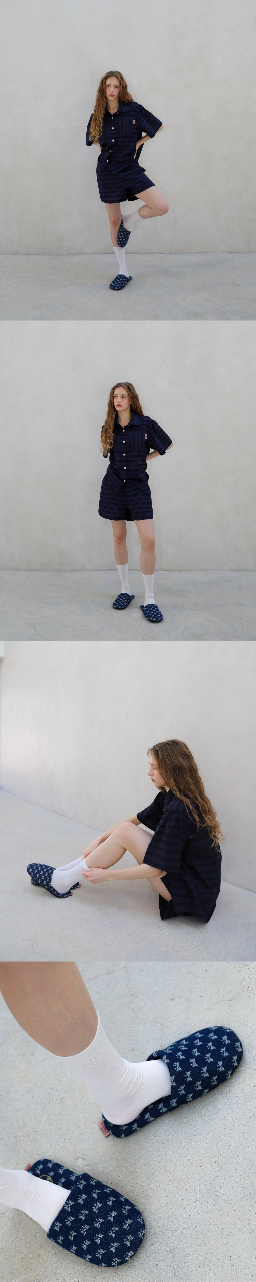 프랭클리 데님 리본 아틀리에 슬리퍼 라이트 블루