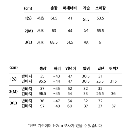 측정 방법에 따라 사이즈에 일부 오차가 있을 수 있습니다.