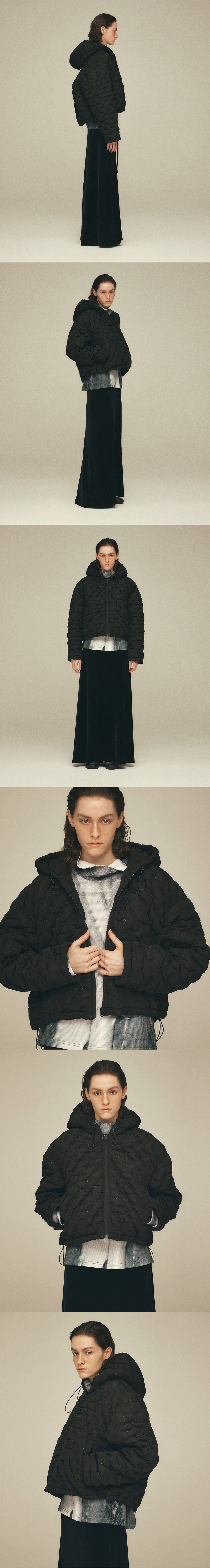 씬 소파 텍스쳐 패디드 후디 자켓 크롭