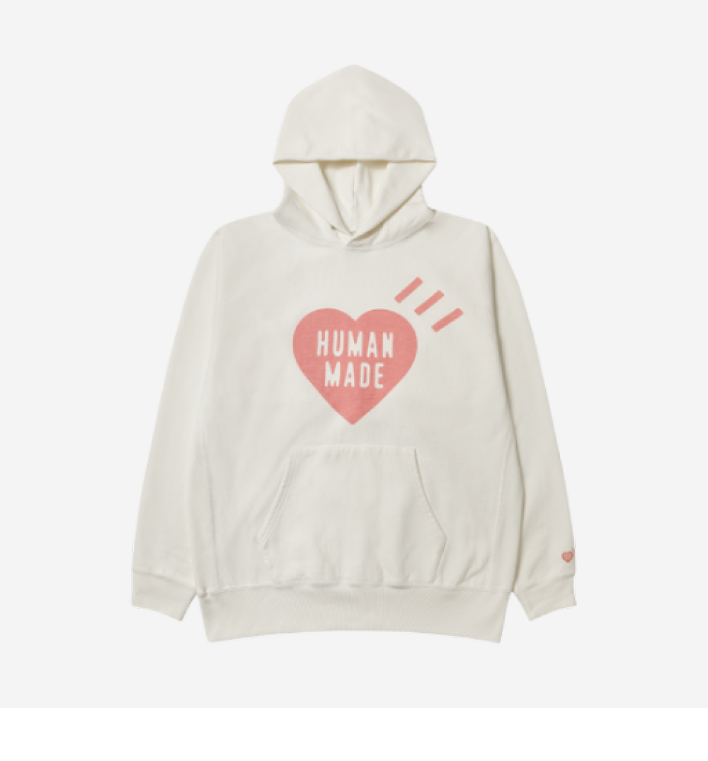 휴먼 메이드 하트 헤비웨이트 후드 화이트 살몬 핑크 - 서울 스토어 한정