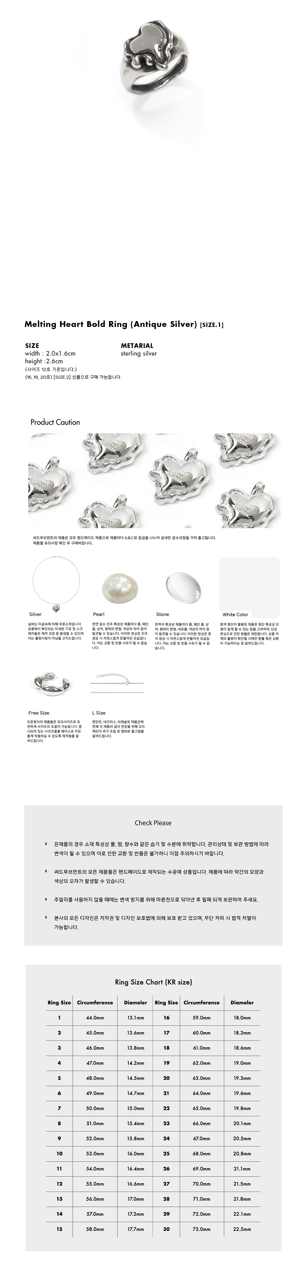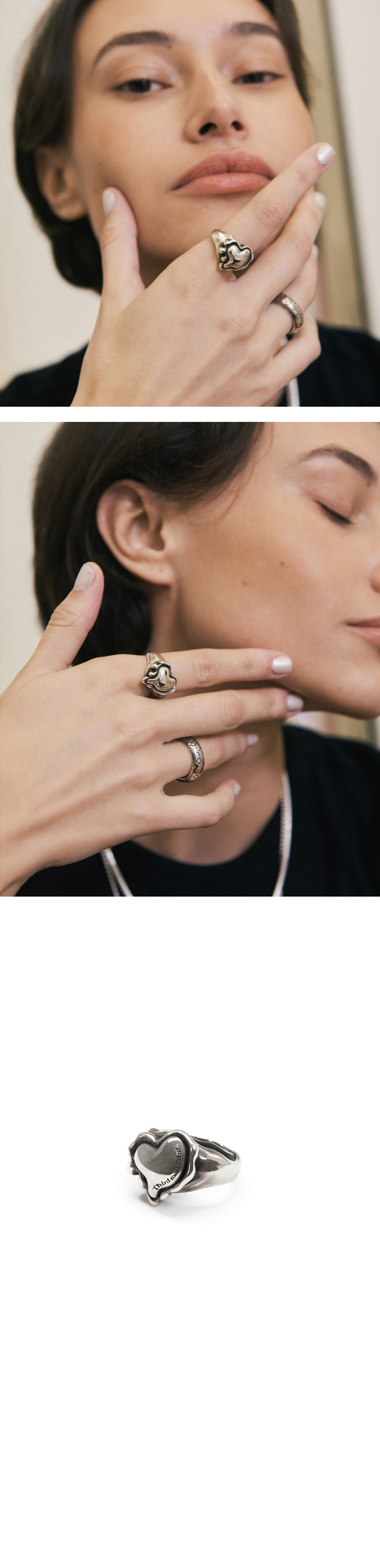 써드무브먼트 멜팅 하트 볼드 링 앤티크 실버 사이즈 1
