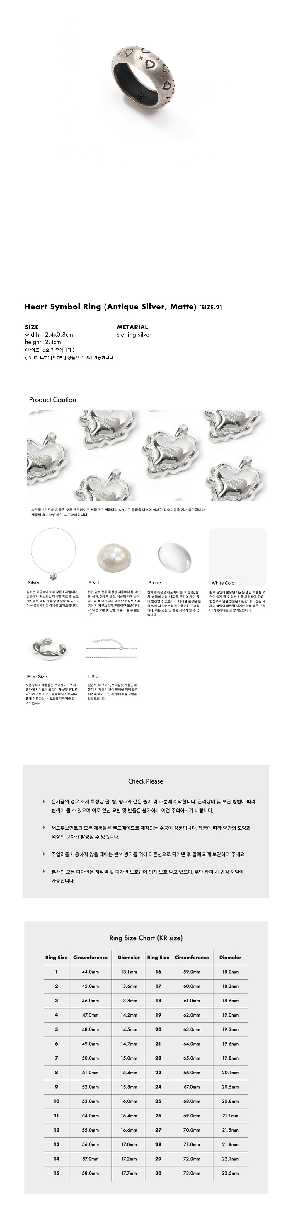 써드무브먼트 하트 심볼 링 앤티크 실버, 무광 사이즈 2