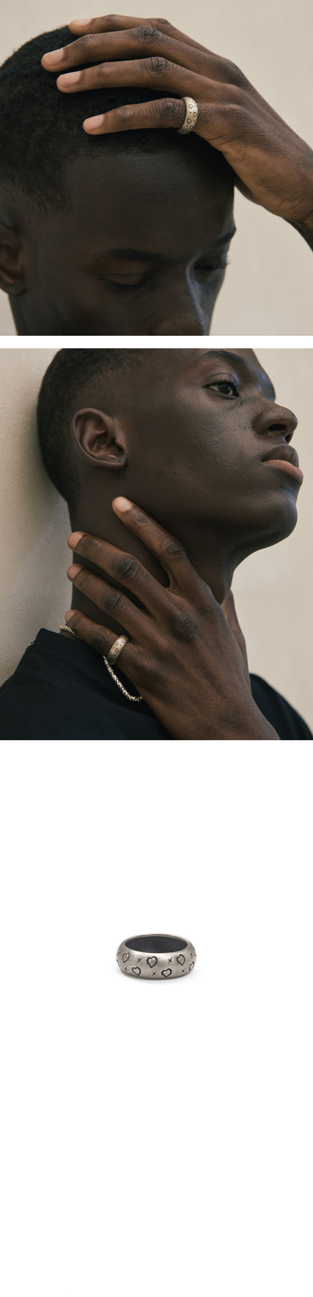 Third movement Heart Symbol Ring Antique Silver, Matte SIZE.2