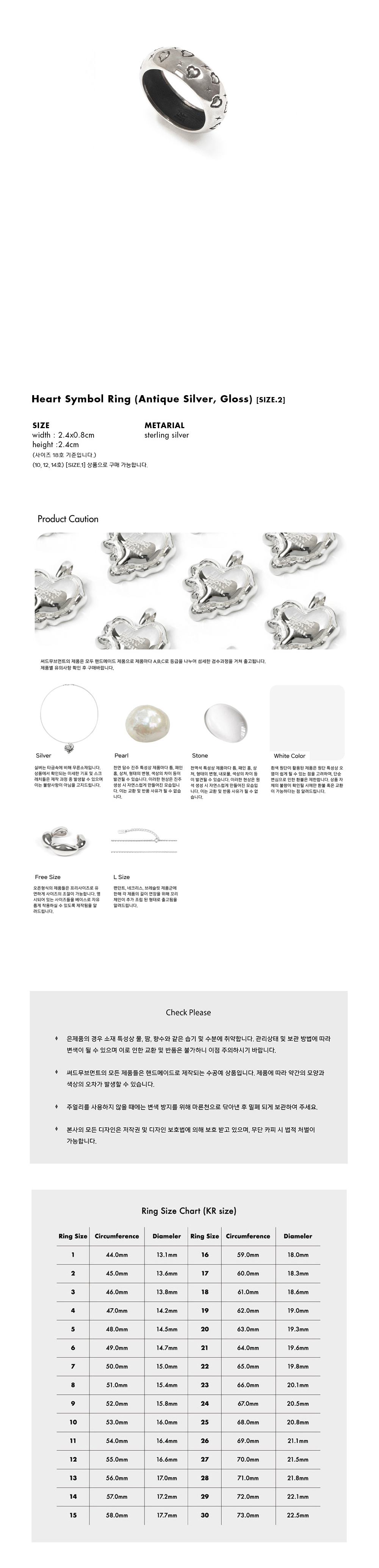 써드무브먼트 하트 심볼 링 앤티크 실버, 유광 사이즈 2