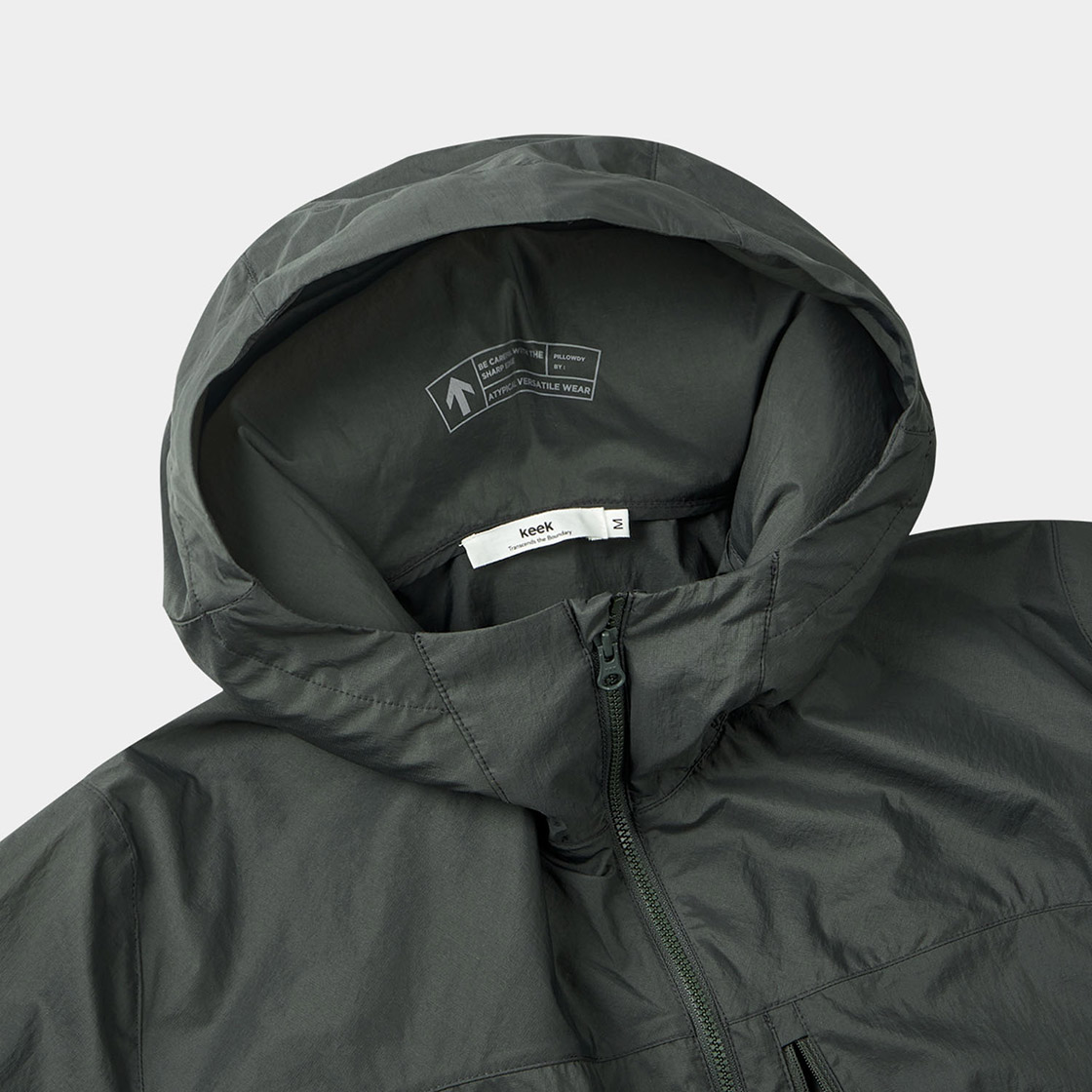 키크 필로우디 UV 가공 경량 바람막이 입니다. 사용하지 않을 때엔 왼쪽 주머니를 뒤집어 패커블 형태로 만들 수 있어 여행, 캠핑 시 수납에 용이하며 주머니 지퍼가 있어 소지품을 안전하게 보관할 수 있습니다. 후드 및 밑단에 조절 스트링을 적용하여 시야 확보와 갑작스러운 기후 대처가 필요한 상황에서 사용이 용이합니다.