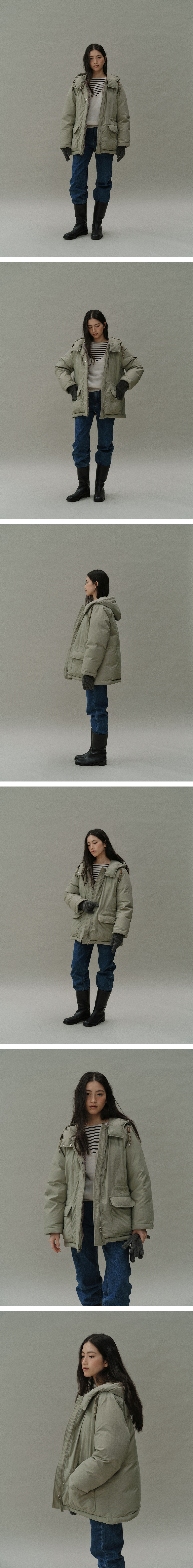 블랭크공삼 구스다운 하프 후드 코트 라이트 카키