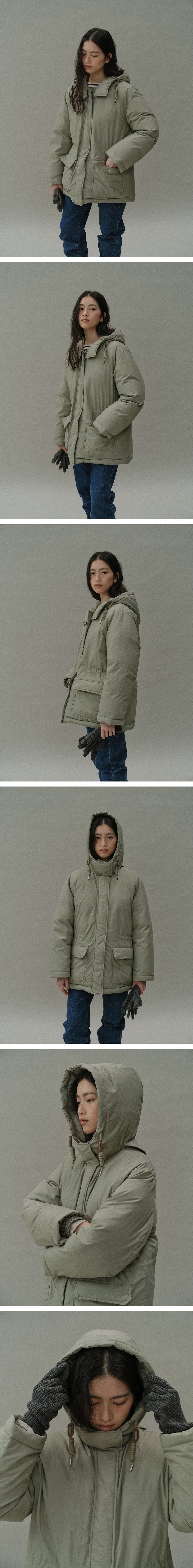 goose down half hooded coat (light khaki)