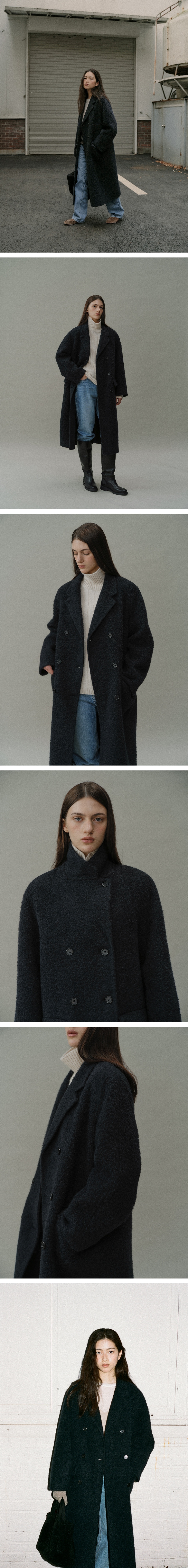 블랭크공삼 수리 알파카 핸드메이드 더블 코트 딥네이비