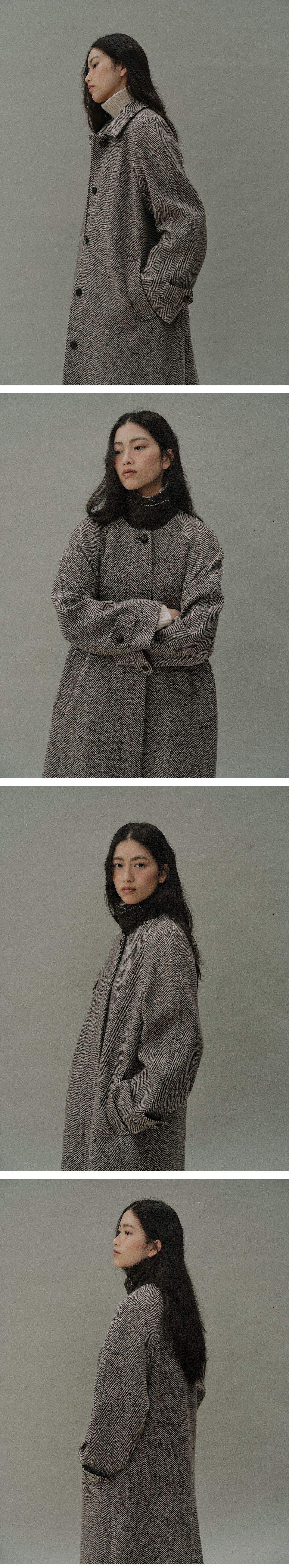 Blank03 Wool Herringbone Balmacaan Coat Brown