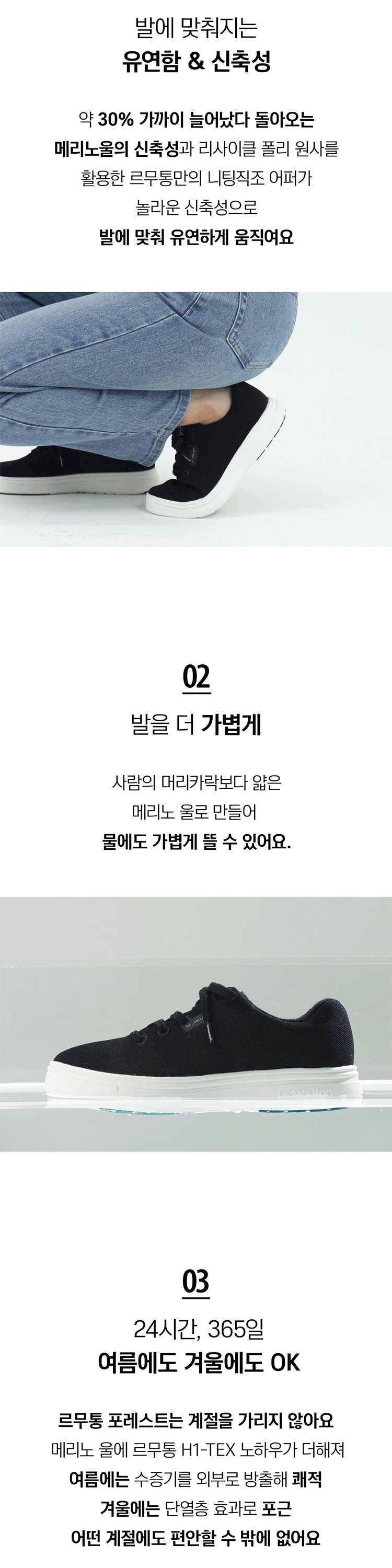 [6% 적립] 르무통 포레스트 발 편한 메리노울 블랙 (화이트 아웃솔)