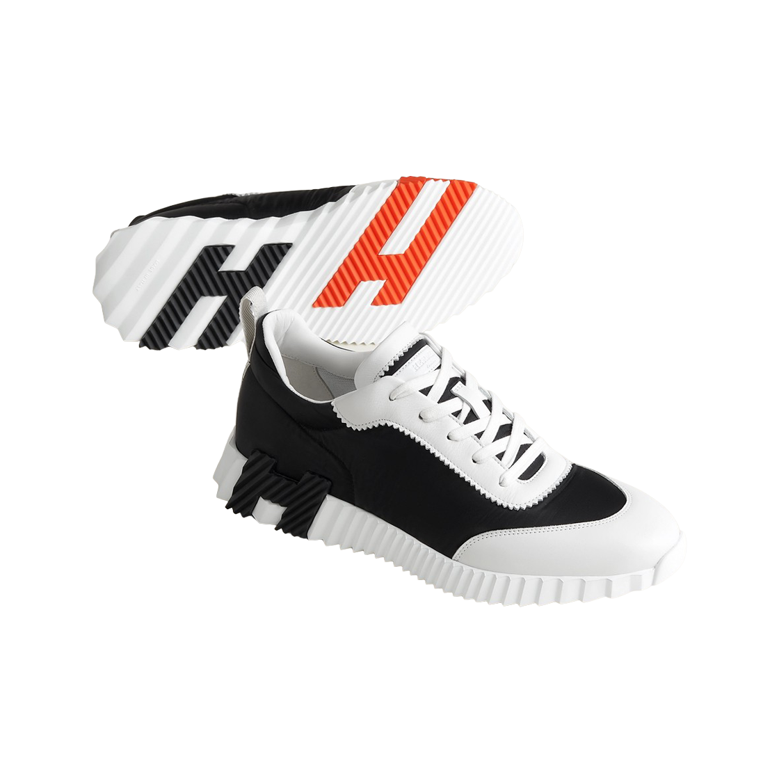 Hermes Bouncing Sneakers Ripstop Fabric Calfskin & Noir Blanc