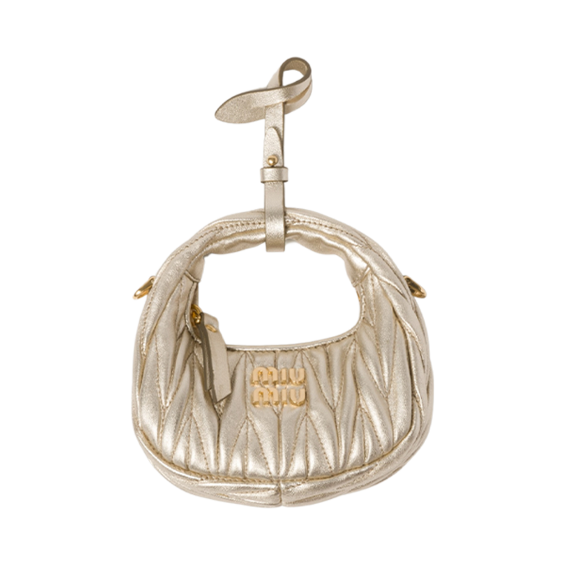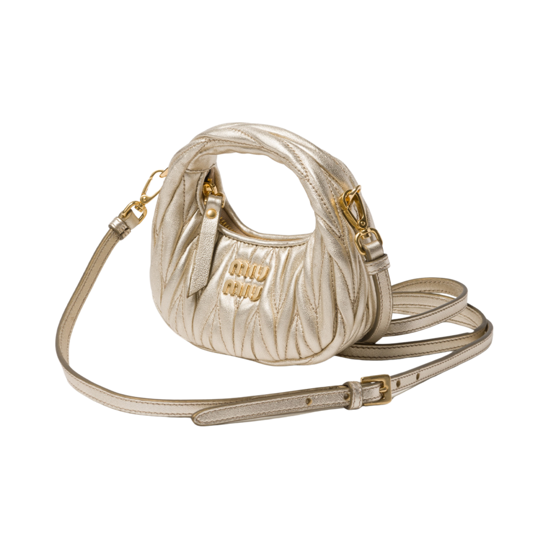 Miu Miu Wander Matelasse Nappa Leather Micro Hobo Bag Pyrite
