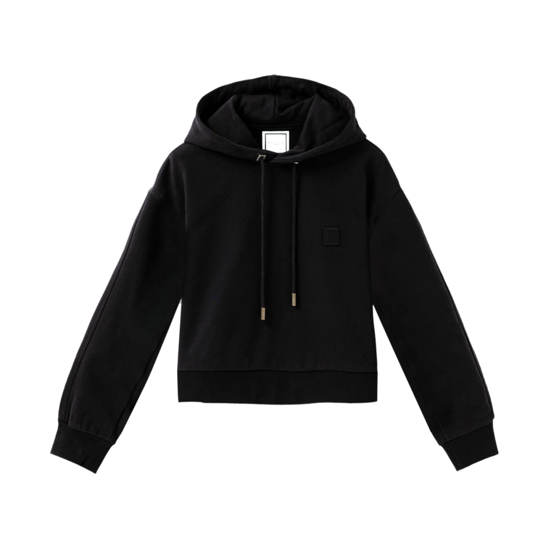 (W) 우영미 스웨잉 플라워 후드 티셔츠 블랙 - 24FW