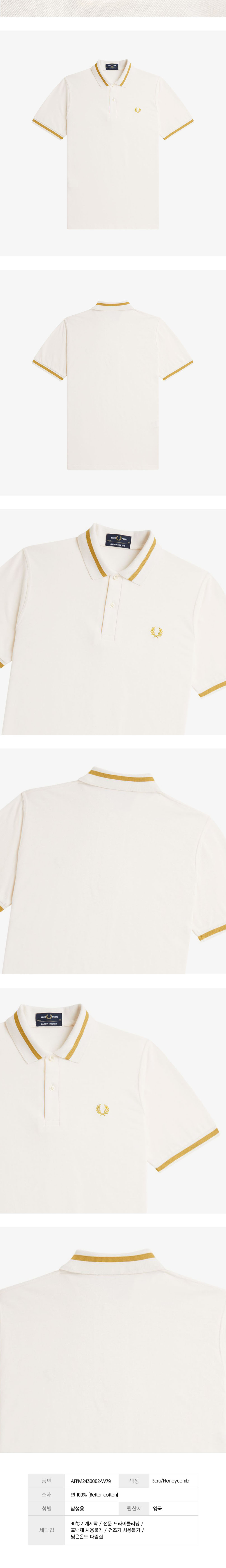 프레드페리 M2 싱글 팁 프레드페리 셔츠 에크루/허니콤