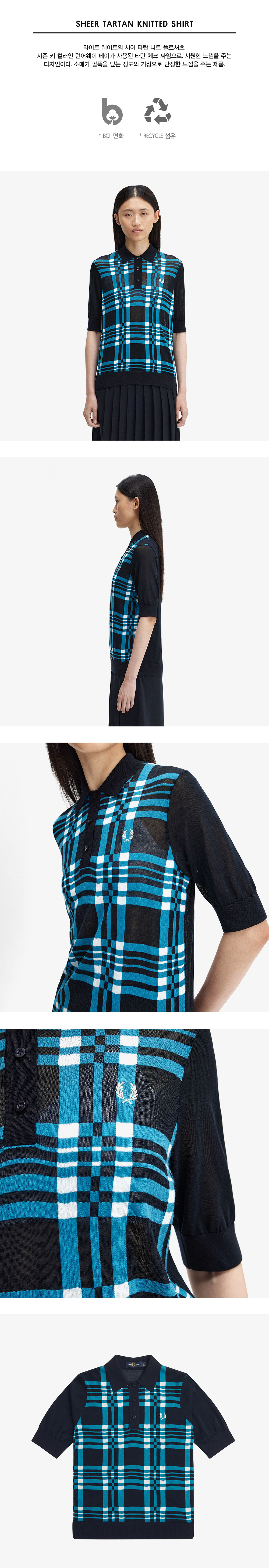 프레드페리 X 에이미와인하우스 시어 타탄 니트 셔츠 네이비