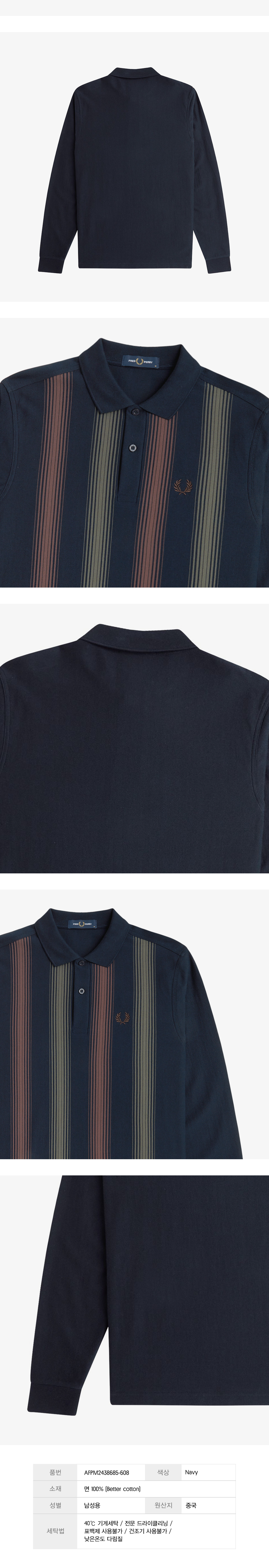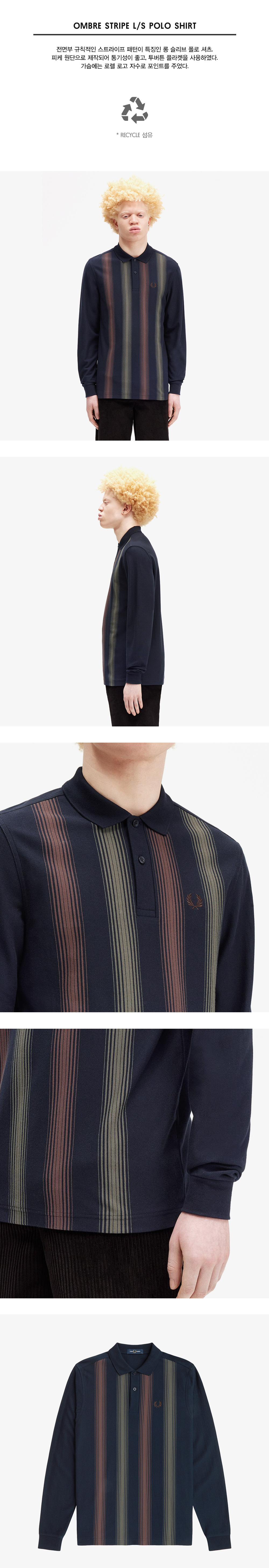 프레드페리 옴브레 스트라이프 롱 슬리브 폴로 셔츠 네이비