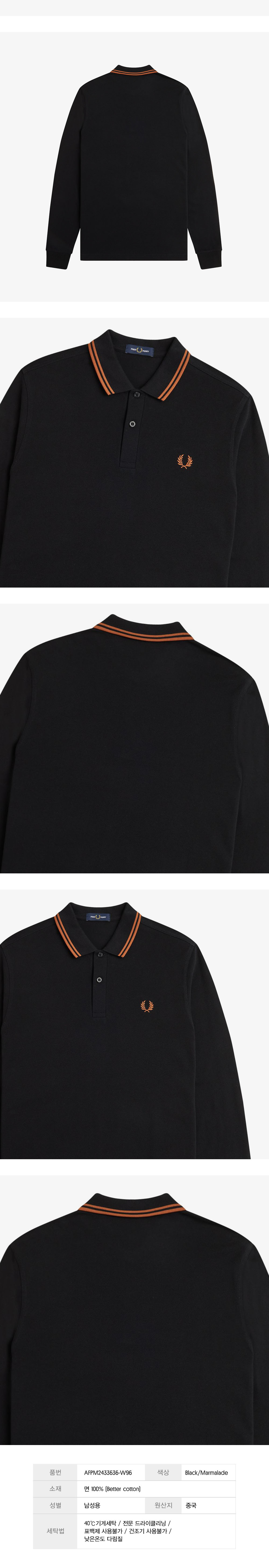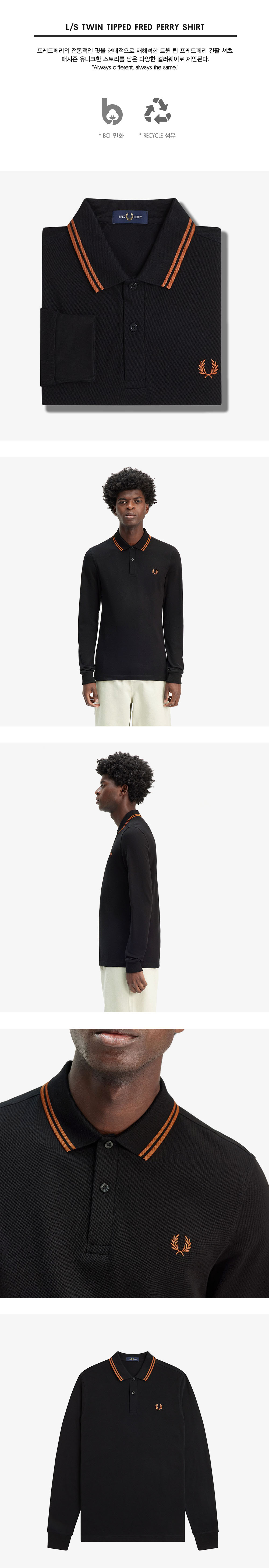프레드페리 롱 슬리브 트윈 팁 프레드페리 셔츠 블랙/마멀레이드